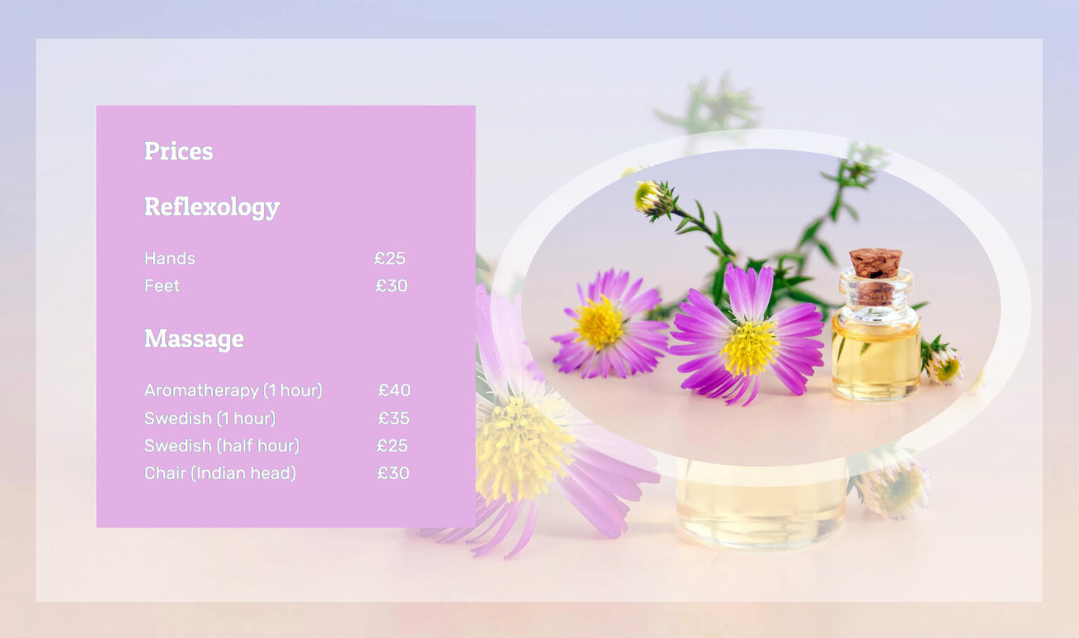 Our centre offers a wide range of Massage and Reflexology services to improve health and well-being.