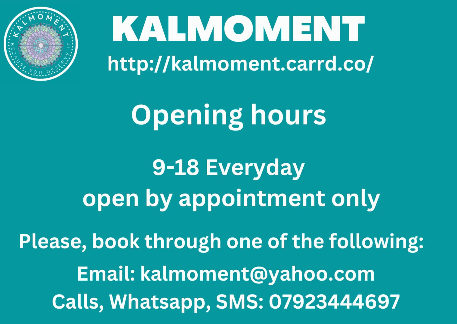Booking methods that suit your needs: we accept appointment requests through WhatsApp, text message or email!☎️ 07923444697